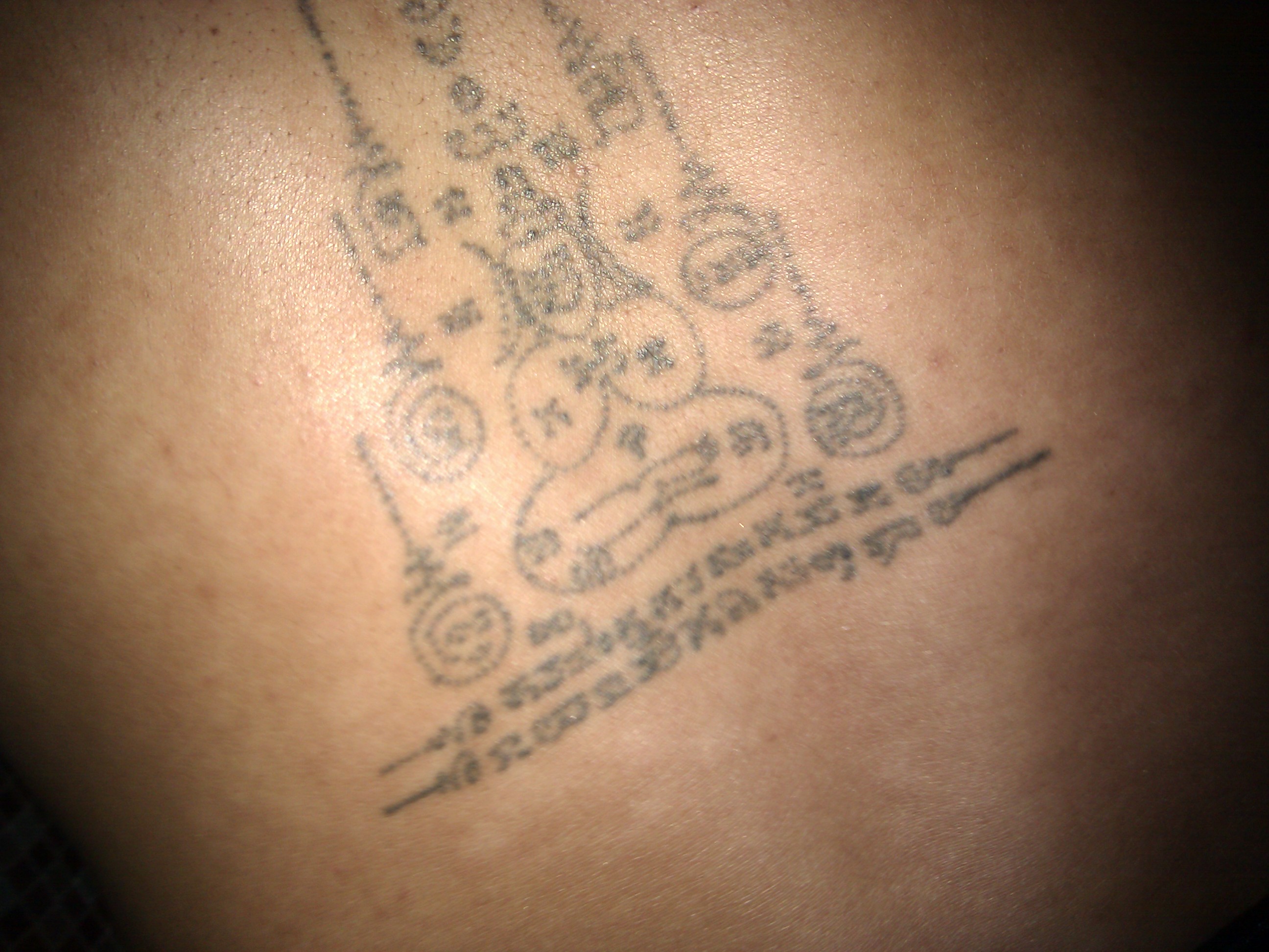 This made people flock to the temple for Sak Yant tattoos from the surrounding areas, and the temple was overflowed with people all day and night. In the end, as Luang Por retired from Sak yant, he once commented to a Looksit that if he didn’t stop tattooing, then he could take 100 Baht notes and use them to tile the roof of his Kuti with! (a weeks wages back then may have been not more than a couple of Baht).
